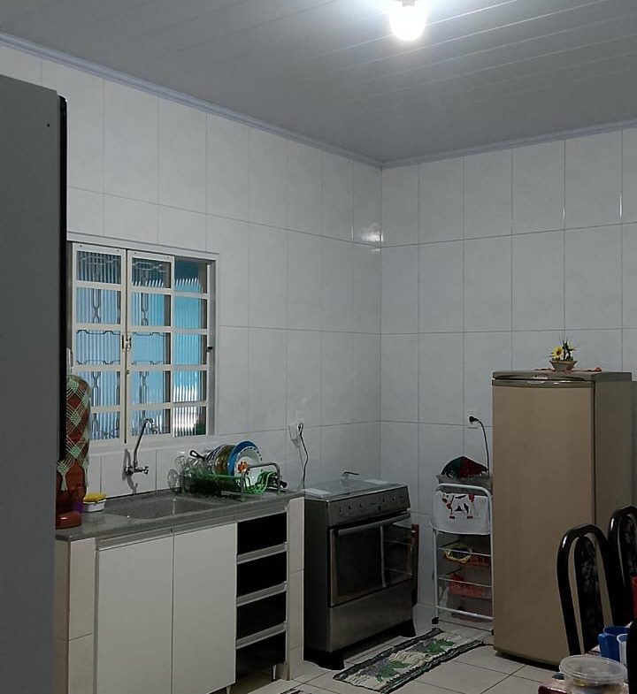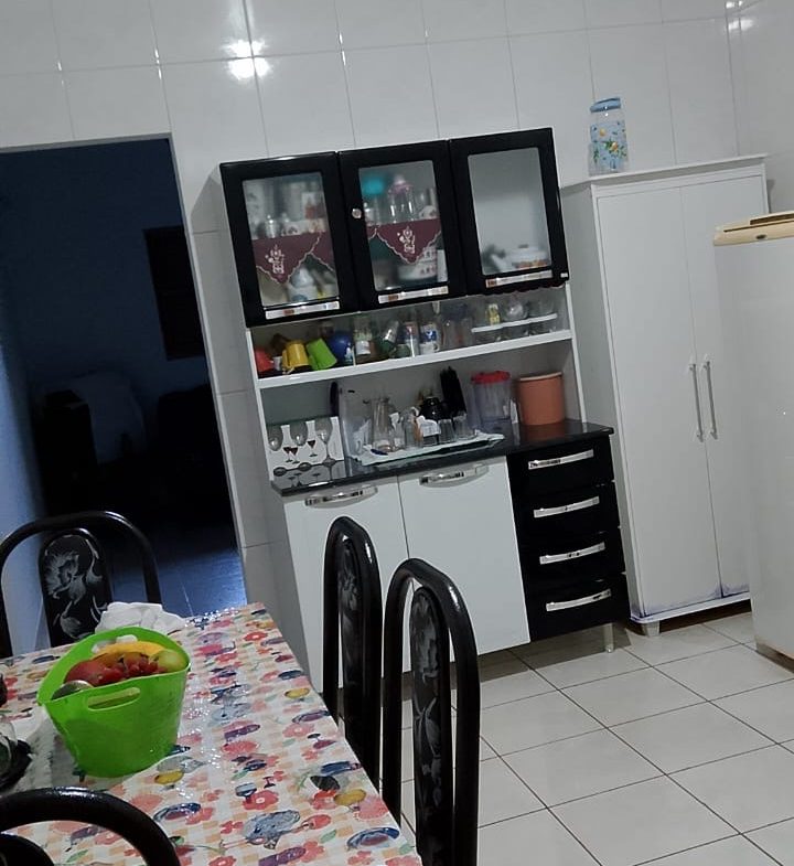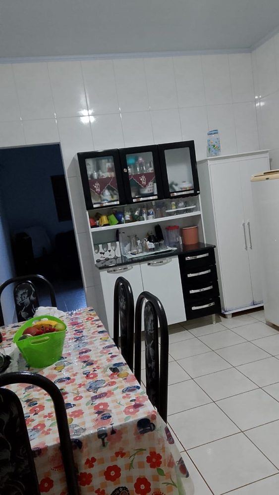2 quartos 2 banheiros mas não são suítes 1 cozinha 1 sala área de serviço e garagem pra 3 carros dispensa,mas um cômodo fora da casa.