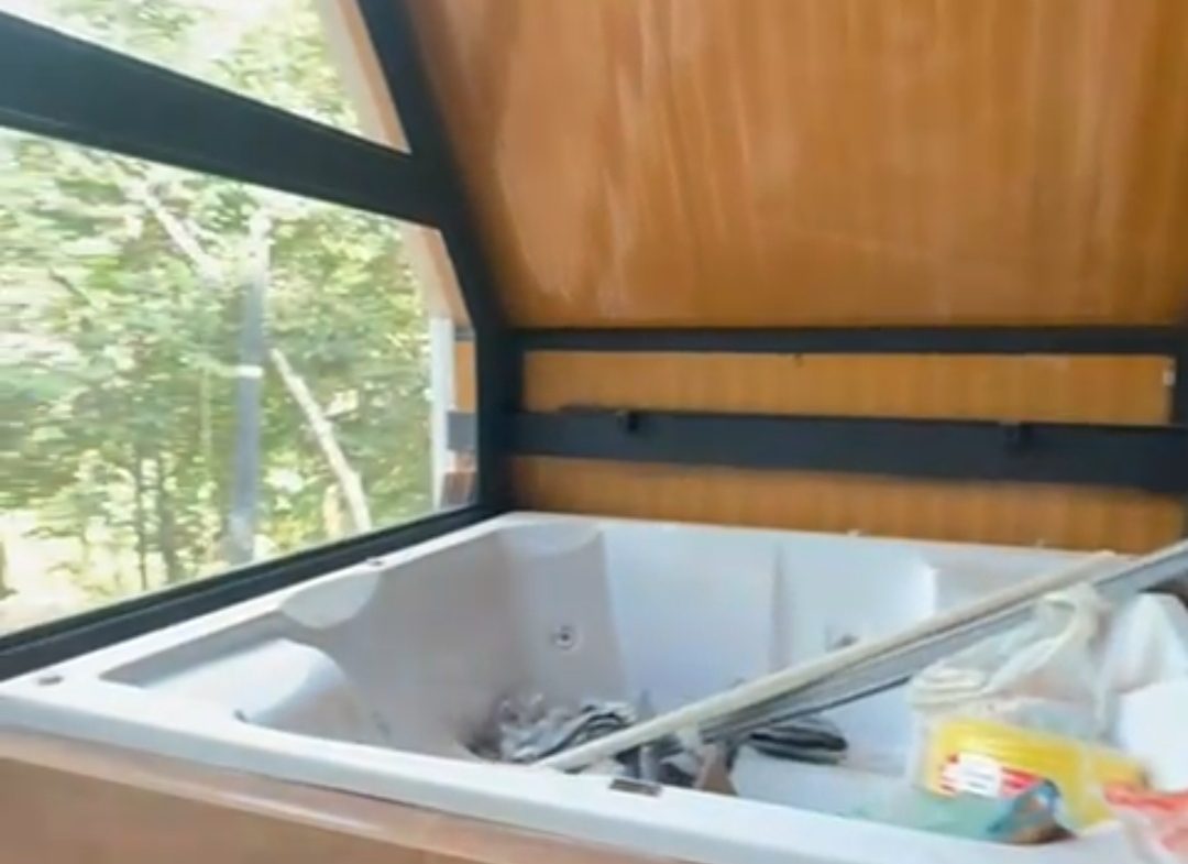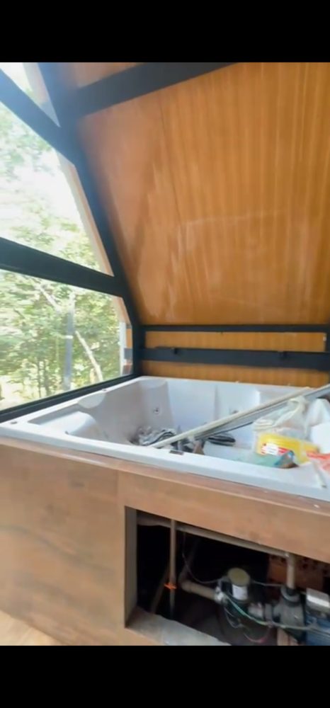 • Cabana em steel frame, com 2 quartos, banheiro e hidromassagem com uma vista incrível